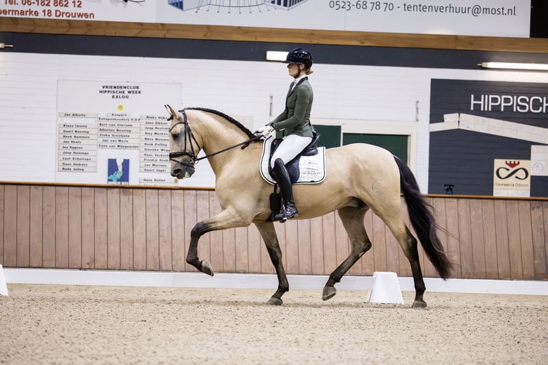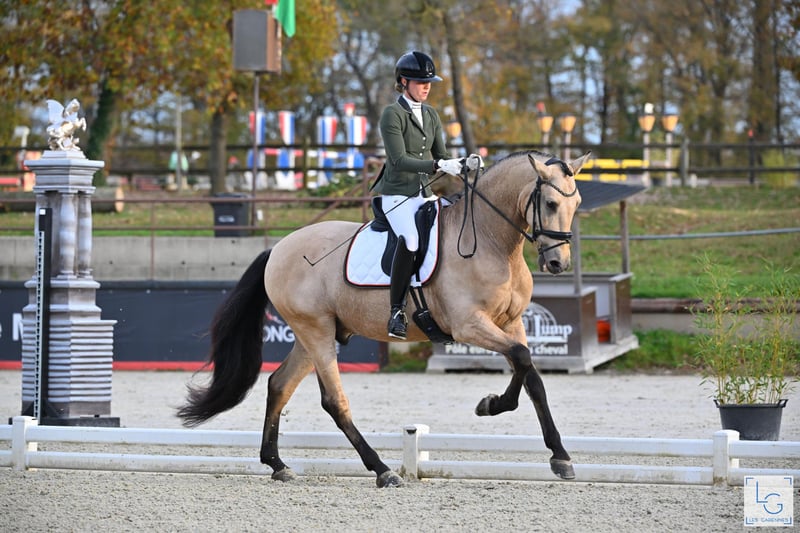 NL Stables Danilo SE Uitzonderlijke 5-jarige PRE-ruin met kwaliteit en een gouden karakter NL Stables Danilo SE is een elegante en zeer getalenteerde 5-jarige PRE-ruin die uitblinkt door zijn kwaliteit, betrouwbare karakter en mooie vooruitzichten voor de hogere sport. Hij combineert uitstraling met een fantastisch temperament en veel natuurlijke aanleg. Hij beschikt over drie uitstekende basisgangen: een grote, zuivere en ruimgrijpende stap een ritmische, expressieve draf met natuurlijke schwung een bergopwaartse, gebalanceerde galop met duidelijk talent voor verzameling Sportprestaties Danilo heeft een indrukwekkende start gemaakt in zijn jonge paarden carrière en bewijst in de ring zowel zijn kwaliteit als zijn fijne instelling: Europees Kampioen – Teamgoud 2025 (MCI) MCI Europees Kampioenschap – 4de Overall Jonge Paarden – Scores: 77,8% en 79% MCI NK – Reservekampioen Jonge Paarden – Scores: 81% en 79% Sterk wedstrijddebuut met 78,2% en 79% in de jonge paarden rubriek, inclusief een 8,5 voor galop Geselecteerd voor het MCI NC/EC traject en gekwalificeerd voor het NK Exloo Deze resultaten onderstrepen zijn talent, werkwilligheid en grote toekomstpotentie als sportpaard. Rijdbaarheid & karakter Danilo is zeer prettig te rijden: licht in de aanleuning, natuurlijk in balans en leergierig. Hij blijft betrouwbaar in nieuwe omgevingen en geeft zijn ruiter direct een veilig en comfortabel gevoel. Dankzij zijn eerlijke en stabiele karakter is hij geschikt voor zowel: de ambitieuze amateur die een fijn, veilig en comfortabel sportpaard zoekt de professionele ruiter die een kwaliteitsvol jong paard wil opleiden richting het hogere werk Op stal is Danilo vriendelijk, aanhankelijk en makkelijk in de omgang. Hij houdt van aandacht, poetsen en is altijd fijn om mee te werken. Keuring & gezondheid Danilo is volledig goedgekeurd, inclusief nek- en rugfoto’s. www.nlstables.com