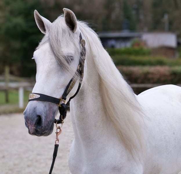 Name: Brillante LXXXI Breed: P.R.E. (Pure Spanish Horse) Gender: Gelding Date of Birth: September 2, 2019 Age: 6 years Height: 15.5 hh Color: Grey (Dapple Grey) Pedigree: with pedigree documentation Temperament: friendly and people-oriented, eager to learn, reliable, patient, curious, intelligent, brave, calm Training/Suitability: ridden, dressage, leisure riding, Baroque riding, Working Equitation Trail Experience: dependable, fearless, resilient, suitable for solo and group rides, trail-proven Health: dewormed, vaccinated, barefoot, eczema-free, teeth checked, osteopathically treated Stabling: box stall, open stable Special features: good basic gaits, stands well for farrier and loading, herd-friendly The qualities listed are based on our personal assessment and do not constitute guaranteed traits. Price: €9,900 (gross price) Have we sparked your interest? To give you a better impression of Brillante, we would be happy to send you a riding video. Of course, we are available for a detailed description of the horse, personal consultation, and to answer all your questions via phone. Please feel free to contact us anytime via WhatsApp or call us at: +49 151 19487595 Our phone hours are daily from 7:00 to 13:30 and from 20:00 onwards. We look forward to hearing from you! A clinical or radiological pre-purchase examination can be arranged with your veterinarian. Brillante can be safely and comfortably delivered to his new home. We take care of all necessary preparations and transport so that your new horse arrives stress-free, well-cared-for, insured, and in good health. Currently, we offer a carefully selected variety of horses for sale. With us, you are sure to find your dream horse. Visit us also on our homepage at: www.marvinsroyalhorses.de. Dear customers, we are happy to introduce you to our horses. You are welcome to lead, groom, saddle, longe, do groundwork, or take trial rides in the riding hall, on the arena, or in the field to get to know your new family member better. This costs €40 per horse; each additional horse €30, and the fee will be refunded upon purchase. Our address: Ferdinand Grube 50 53577 Neustadt-Wied Google Maps: marvinsroyalhorses