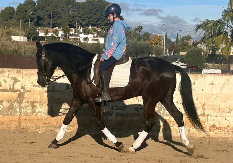 For sale is this exceptionally gentle and reliable gelding, nearly 7 years old, with a height of approximately 1.58 meters (16.1 hh). He is a true character type, impressing with his calmness, friendliness, and serenity. In handling, he is consistently well-behaved, people-oriented, and straightforward, both on the ground and under saddle. Under saddle, he is comfortable to ride, responds delicately to aids, and is very dependable. Thanks to his balanced temperament, he is an excellent choice for children and less experienced riders, as he provides a sense of security and always strives to do everything correctly. He remains calm, reliable, and shows no signs of bad habits. This gelding is a real trust horse, with which one can work relaxedly and simply enjoy, whether in daily training or leisurely riding. An ideal partner for family, leisure riding, or classical work, who immediately wins hearts with his lovable character. If interested, we are happy to send videos or you are welcome to visit us and get to know this handsome fellow in person. We kindly charge €30 for a test ride, which will be credited towards the purchase price.