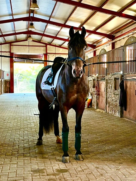 Opportunity to acquire a magnificent purebred Spanish horse! This is a beautiful chestnut gelding, born in 2019, standing approximately 15.7 hh. He is a gelding, well-trained and suitable for dressage and equestrian sports. His training and temperament make him an ideal partner for riders seeking a reliable horse with potential in high-level disciplines. Vencedor JJ also boasts excellent genetic roots: his dam comes from the renowned Andalusian breeding farm PERALTA, known for the quality, nobility, and versatility of its stock. This horse has always been handled by a highly experienced professional with over 30 years of expertise in the equine world, working with him daily from Monday to Saturday. This ensures a serious, consistent, and well-structured training process. Don’t miss the chance to meet this exceptional horse, which combines beauty, talent, and a great attitude towards sport. For more information and to arrange a viewing, please do not hesitate to contact us. We work with a trusted private transporter offering express service if needed. The horse travels with maximum safety, making stops at stables for rest and well-being during transit. Any veterinary checks can be carried out, with the costs borne by the buyer. Additionally, we offer pickup at Alicante Airport and assistance with accommodation to facilitate your visit. We speak English and German to assist international buyers. For any questions or further information, please feel free to contact me.