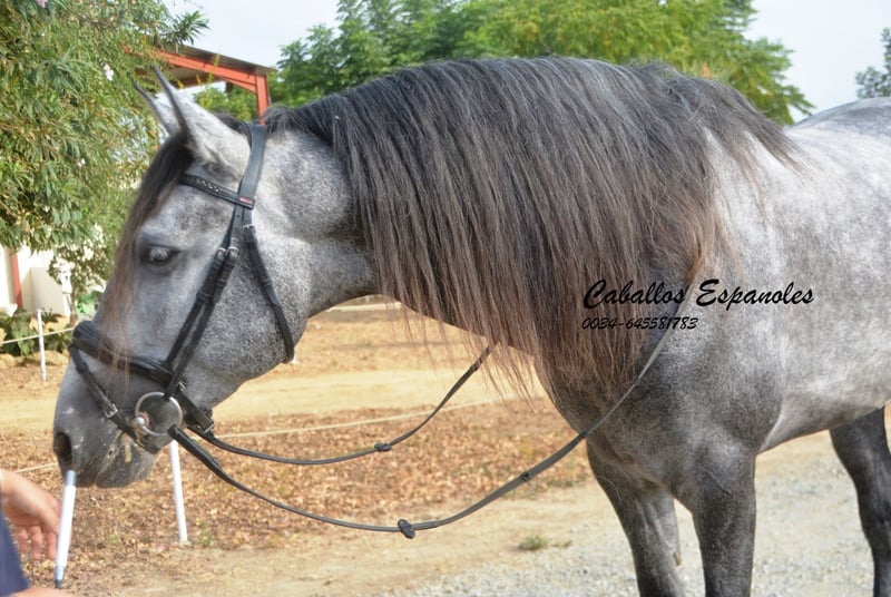A fantastic, large-framed PRE gelding who is now really starting to fill out his body. He stands on a solid foundation, accompanied by a harmonious conformation. This gelding is equipped with 3 very good basic gaits and is ridden in these basic gaits. He can perform shoulder-in and leg-yielding. He always shows himself to be very well-behaved and enjoys working. He has also been out on trails. The gelding is easy to ride. His breeder has chosen the Mejorante stallion Ules on the sire's side, who is a son of the elite stallion Impaciente (Camacho Benitez). On the dam's side, we have a Yeguada Militar mare, who is a daughter of Pampero V (Marín García). The horse is being sold on behalf of the owner. He can stay with us for further training if desired. A pre-purchase exam can be organized at short notice. International transport available.