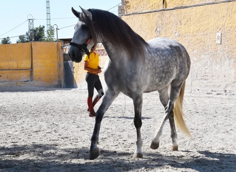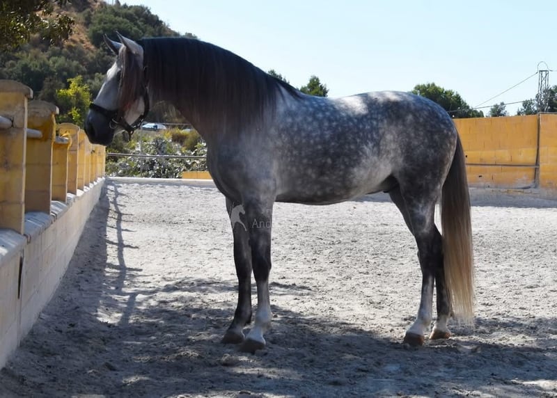 leuk karakter met een aangenaam temperament, bereden in de basisgangen, achterwaarts, groot terrein, barok, goede afstamming, heeft al röntgenfoto's, stamboom: Yeguada Militar, Granda Losada, Lovera, San Roman, hij heeft verschillende gekwalificeerde voorouders. www.elegante-andalusier.com