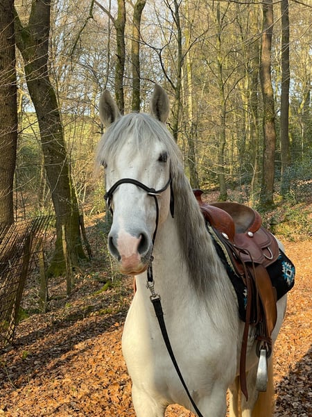 Armas ist ein mittlerweile 8-Jähriger reinrassiger PRE-Wallach mit vollen ANCCE-Papieren, der vor dreieinhalb Jahren als „Problemhengst“ mit spanischer Vorgeschichte nach Deutschland kam. Er wurde damals aus „Durchgänger“ bezeichnet. Schnell stellte sich jedoch heraus, dass er nicht aus Bosheit durchging, sondern schlichtweg Angst unter dem Reiter hatte und auch im Umgang sehr schreckhaft war. Von Grund auf wurde neu mit ihm angefangen und es wurde ihm zunächst Zeit zum Ankommen gegeben, so konnte Armas wieder Vertrauen aufbauen und ist im Umgang ein wahrer Schatz geworden. Im Herbst 2023 wurde er kastriert und ist seit dem nochmal deutlich gelassener geworden. Seit dem wurde er vom Boden gearbeitet und wieder an Sattel und Trense gewöhnt, jedoch nicht geritten, als ich ihn Anfang 2024 übernommen habe.. Er ist im Umgang absolut lieb und verlässlich (er liebt das Spazierengehen) . In der täglichen Arbeit zeigt sich immer mehr, dass Armas ein absolutes 1-Personen-Pferd ist. Er sucht immer mehr eine Bezugsperson und fordert dieses regelrecht ein. Armas entwickelte sich gut bei mir, nach 4 Monaten konnte er im Schritt geritten werden - doch dann hattei ch einen schweren, gesundheitlichen Rückschlag , der immer noch andauert und immer wieder "zuschlägt", so dass ich Armas nicht kontinuierlich und stetig weiter "trainieren" kann - und dadurch, dass ich immer wieder ausfalle ( für Wochen), fängt das "Training" immer wieder von vorne an.... eine Endlosschleife..... letztes Jahr im November wurde Armas das letzte Mal im Schritt geritten.... dann bin ich wieder ausgefallen und konnte jetzt erst wieder vor 3 Wochen mit Armas das "Training" starten..... und habe mich schweren Herzens dazu entschlossen, einen neuen Menschen für Armas zu finden, da die "Endlosschleife" nicht mehr aufhören wird.... es bricht mir das Herz - aber ich werde ihm einfach so nicht mehr gerecht - und DAS hat Armas nicht verdient! Aufgrund der bereits erzielten Fortschritte habe ich die Hoffnung, dass Armas auch wieder ein Reitpferd werden kann ( wenn man kontinuierlichdran bleibt). Er ist grundsätzlich nicht schreckhaft, muss aber Vertrauen zum Menschen fassen. Im Sommer 2023 wurde er bei den Vorbesitzern auch Schritt und Trab geritten,- jedoch fiel die Entscheidung dann zunächst für die Kastration. Ich suche für Armas einen Menschen, der ihm die notwendige Zeit gibt und ihn sich mit Geduld und Liebe neu ausbildet. Armas ist aufgrund seiner Vergangenheit absolut kein Anfängerpferd und braucht einen erfahren und souveränen Menschen, um die Schatten seiner Vergangenheit vergessen zu können.