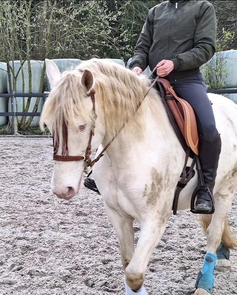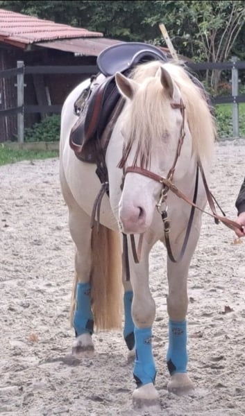 Vendiamo il nostro stallone PRE purosangue. Il pelo di Fandango brilla come perle al sole. La sua lunga criniera e la coda leggermente ondulata gli conferiscono molta espressione e bellezza. I suoi occhi blu e chiari guardano dritto nel cuore. Il bel stallone è nato il 01.05.2017 e ha un'altezza al garrese di 1,60 m. È un cavallo meraviglioso, quando lo montiamo diciamo "è la nostra nuvoletta" e nel maneggiarlo è un "gentleman". Fandango è stato addestrato a terra, conosce tutte le posizioni di conduzione ed è stato utilizzato anche nel coaching. Impara rapidamente le lezioni di circo, ama stare sul podio. Si avvicina all'aiuto per la salita ed è paziente durante la salita e la discesa. Quando viene montato, mostra andature comode, facili da sedere. Si percepisce una leggerezza nei comandi. Fandango padroneggia le andature di base ed è stato montato anche nelle andature laterali. Anche durante le passeggiate e nel traffico stradale, Fandango si dimostra un partner sicuro. Fandango ama imparare cose nuove ed è divertente svilupparsi ulteriormente con lui. Lo stallone è tranquillo per il maniscalco e per il trasporto, va e viaggia anche da solo nel rimorchio. Fandango ha documenti dell'ANCCE. Porta con sé le migliori caratteristiche dei suoi antenati, i cavalli Cartujano, in grazia e volontà di apprendere. Vendiamo Fandango solo con grande rammarico nella migliore casa del mondo. La posizione è 37574 Einbeck. Su richiesta, saremo lieti di inviarvi video della monta.