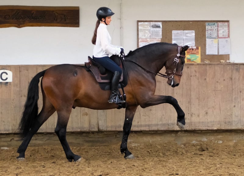 Zum Verkauf steht unser bald 8 Jahre alter PRE Wallach (Pura Raza Española) mit exzellenter Abstammung aus der renommierten Torreluna-Zucht, mit viel Escalera-Blut. Nur in ein dauerhaftes, und liebevolles 5* Zuhause bei pferdeerfahrenen Menschen, die ihm auch ein artgerechtes und abwechslungsreiches Leben ermöglichen können und wollen. ✨ Details: • Stockmaß: 1,66/1,67 m, großrahmig mit beeindruckender Präsenz • Ausbildungsstand: reell L-Dressur, sehr gut geritten, auch Traversalen, eingesprungen bis etwa E-Niveau • Bewegung: Für einen Spanier weiträumige, große Bewegungen in allen 3 GGA, wenig Campaneo, und viel Schwung • Charakter: Brav, verlässlich, kein Bocker, Durchgänger oder Steiger, aber sehr intelligent und meinungsintensiv • Gesundheit: Seit fast 5 Jahren im Besitz, bisher nie krank gewesen, wurde mit 3 Jahren nach Import in Deutschland kastriert • Papiere: Mit Equidenpass und ANCCE-Abstammungsnachweis • Farbe: Dunkelbraun ohne Abzeichen• Besonderheiten: Super sitzbequem, hohe Versammlungsfähigkeit, steht im sportlich-barocken Typ, deckt auch große Reiter hervorragend ab, geritten auf Trense und kennt auch Kandare Er ist schmiede- und verladefromm, läuft seit März 2025 Barhuf, und hat dafür für vorne, für das Gelände, sehr gute Hufschuhe (Magic Explora 2021). Ich sehe ihn nicht als Anfängerpferd, er kann aber unter/mit Hilfestellung auch von schwächeren Reitern geritten werden, wenn auch regelmäßig gute Reiter ihn mitreiten. Er gehört nicht zu den hektischen, überfleissigen Spaniern, er ist eher der ökonomische Dieseltyp, der motiviert werden möchte, da er ansonsten im "Sparmodus" läuft, und bei schwachen Reitern gerne mal triebig ist, wenn sie ihn nicht korrekt von hinten nach vorne reiten können, und der Motor aktiviert wird. Mein PRE kennt sowohl Boxenhaltung mit/ohne Paddock davor, wie auch aktuell Offenstallhaltung in gemischt-geschlechtlicher Gruppe. Litzensicher. Bisher keine Allergien, kein Ekzemer. Halbjährliche Checkups vom TA und Chiropraktiker, regelmäßig Zahnarzt, letzter Zahnarzttermin März 2026, letzte Chiro März 2026. Zuletzt April 2025 geimpft, Influenza und Tetanus. Je nach Wetter 1 x Woche im Gelände, und da auch nur ruhige gemütliche Runden in Gesellschaft zur Entspannung, also Schönwetterbusch. Er wurde eingesprungen bis E-Niveau, aber seit 3 Jahren nicht mehr gefördert, kennt Boden- und Freiarbeit. Er kennt Führanlage und Laufband. Er kann spanischen Schritt unter dem Sattel, Beginn spanischen Trab, bietet die Gr. Passage an, Traversalen im Schritt und Trab, Galopp angefangen, Ansatz zu Schritt- u. Galopppirouetten. Diese Lektionen sind bis auf den spanischen Schritt nicht von schwachen Reitern abrufbar. Er bekommt arbeitsentsprechendes Kraftfutter mit Zusätzen, und kennt auch Heu ad lib. Aktuell bekommt er kein Kraftfutter, da er leichtfuttrig ist, und meist Heulage gegeben wird 24/7, und dadurch erhält er nur noch Mineralfutter, Leinsamen, und nötige Zusätze. Auf Wunsch gegen Aufpreis mit hochwertigem Zubehör abzugeben: ✔ Hochwertige super bequeme Markendressursättel, Prestige Melody K CPS (NP aktuell 4.900 - 5.200 Euro), oder Dresch Dressursattel. ✔ Trensen, diverse Gebisse, Decken, Hufschuhe, Martingal, Halfter, Gamaschen, Schabracken u. v. m. Ich gebe diesen wunderbaren Wallach nur in allerbeste und geeignete Hände, es ist kein Notverkauf. Der Preis entspricht seiner Qualität. Danke für Ihr Interesse! Bitte eine Nachricht mit kompletten Namen + Rufnummer schicken, und was genau für ein Pferd Sie suchen, und wie Ihr reiterlicher Background ist, dann melden wir uns gerne bei Ihnen zurück, auch ob es unserer Meinung nach passen könnte. :) Für Vorführen und Probereiten berechnen wir 40 Euro, welche bei einem Kauf angerechnet werden. Eine AKU (Ankaufsuntersuchung) kann auf eigene Kosten des Interessenten/Käufers selbstverständlich gerne durchgeführt werden.