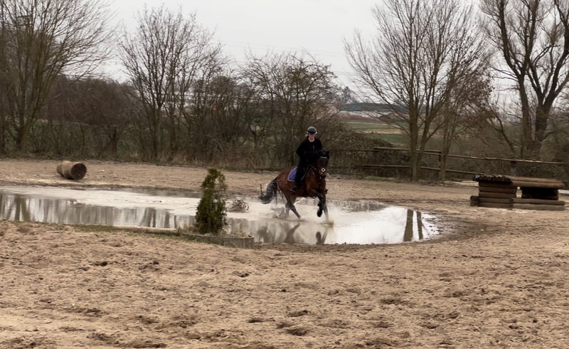 Palermo ist ein 9-jähriger PRE-Wallach mit vollem ANCCE-Papier (gekört, Abstammung größtenteils Yeguada Militar), der mit seinem stolzen Ausdruck und guten Charakter schnell begeistert. Er zeigt sich im täglichen Umgang als vertrauensvoller und leistungswilliger Partner, der seinem Reiter sowohl im Training als auch allein oder mit anderen im Gelände Freude bereitet. Unterm Sattel ist Palermo aufmerksam und möchte gefordert werden, er denkt beim Reiten viel mit und braucht sinnvolle Beschäftigung. Er kennt aus seiner bisherigen Ausbildung in der Vielseitigkeit sowohl die Dressurarbeit, den Springparcours als auch das Geländetraining. Neuen Aufgaben stellt er sich mutig und motiviert und bietet seinen Reiter damit die Möglichkeit ebenfalls dazuzulernen. Gesucht wird daher ein erfahrener Reiter, der an einer vertrauensvollen Beziehung zu seinen Partner Pferd interessiert ist, ihn fördert und zu schätzen weiß. Palermo lernt schnell und möchte Abwechslung in seiner täglichen Arbeit. So lernt er auch gerne mal kleine Tricks. Er bockt, steigt, beißt und tritt nicht. Er war bereits auf Wettbewerben nach WBO und bei einem Reitabzeichenlehrgang RA 5 vorstellig und kennt auch Auswärstraining. Er ist verladefromm. Aktuell läuft er mit barhuf. Er wird regelmäßig entwurmt und ist halbjährlich geimpft. Es bestehen keine gesundheitlichen Einschränkungen! Er kennt die Boxenhaltung mit regelmäßigen Koppelgang in einer kleinen Wallachherde. Er ist leichtfuttrig. Um mein Pferd nur ernsthaften Interessenten vorzustellen, bitten ich um eine Probereitgebühr von 50€. Diese wird beim Kauf selbstverständlich vollständig angerechnet. Auf Wunsch sende ich gerne weitere Videos. Seine Sättel (Dressur Jorge Canaves Miro IV & Spring HorseStar Endeavour) können auf Wunsch mit erworben werden.