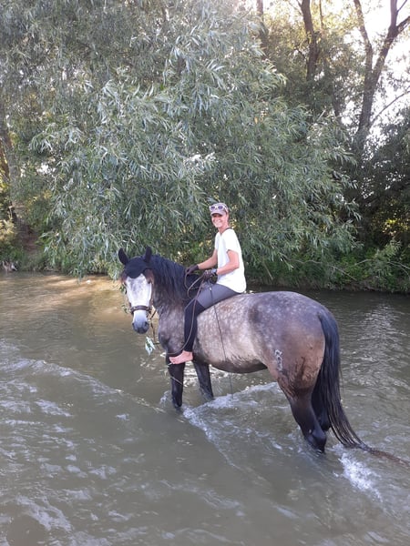 I am selling my extremely handsome PRE gelding, Garabato Don, known as Scirocco. Scirocco has specific requirements for his living environment, which I am unfortunately unable to provide. He absolutely needs: - An open stall with 24-hour hay supply - A sturdy, dry shelter (not just a field tent) - No straw (not even as bedding) - A consistent, social herd The 8-year-old gelding is gently trained according to classical riding principles and always eager to please. He is well-behaved both alone and in a group when hacking out. Currently, he is only ridden bitless, which he clearly prefers over bitted riding. However, he is also familiar with a bit. His teeth are regularly checked. He knows classical groundwork, as well as small circus tricks and liberty work, which he enjoys greatly. He is barefoot but somewhat sensitive; he needs hoof boots on stony ground. He has also been shod before. Additionally, he has a deformity in the front (toe-in), but this does not affect his movement. Optional: the tack can be purchased together with him (Signum Paddle, Signum saddle pad, as well as bits and a cavesson). Scirocco is only available to someone who can provide an open stall and genuinely takes the time to engage him on multiple levels. Feel free to contact me with any questions! Meetings and trial riding are possible by appointment.