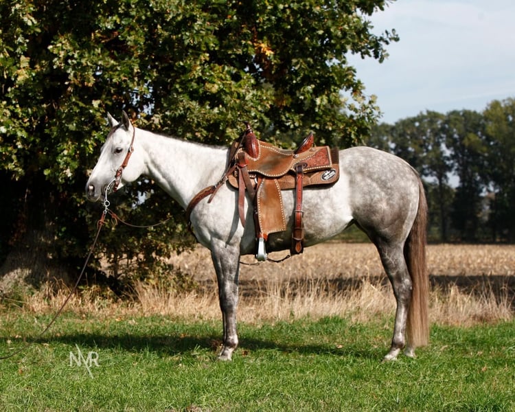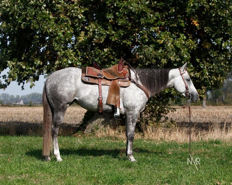 ✨ Te koop: MC Rochet Easy Cash ✨ 2019 grijze merrie (KN Easy Loven x Cash N Easy Too) Roxy is een eerlijke, ongecompliceerde en werkwillige merrie, geschikt voor ruiters van elk niveau. Ze is makkelijk te rijden, denkt mee met haar ruiter en geeft vertrouwen. 🌟 Opleiding & Wedstrijdervaring Getraind in barrelrace Getraind in pole bending Wedstrijdervaring in barrelrace én pole bending Fijn aan de hulpen en makkelijk te rijden Geschikt voor recreatie én sport Ze is bekend met een wedstrijdomgeving, blijft nuchter op verplaatsing en pakt haar werk steeds gemotiveerd aan. 🌿 Buitenritten Roxy is super braaf op wandeling, zowel alleen als in groep. Ze blijft rustig, is niet kijkerig. 🐴 Karakter & gezondheid Goed in de omgang Staat braaf voor hoefsmid en dierenarts UTD met inentingen, ontwormingen, tandarts,... RX-foto’s beschikbaar (zonder opmerkingen) Kortom: een veelzijdige, betrouwbare merrie met wedstrijdervaring, een fijne basis en een lief karakter – klaar om samen verder te groeien met haar nieuwe ruiter. 📩 Stuur gerust een whatsapp (+32476372018)