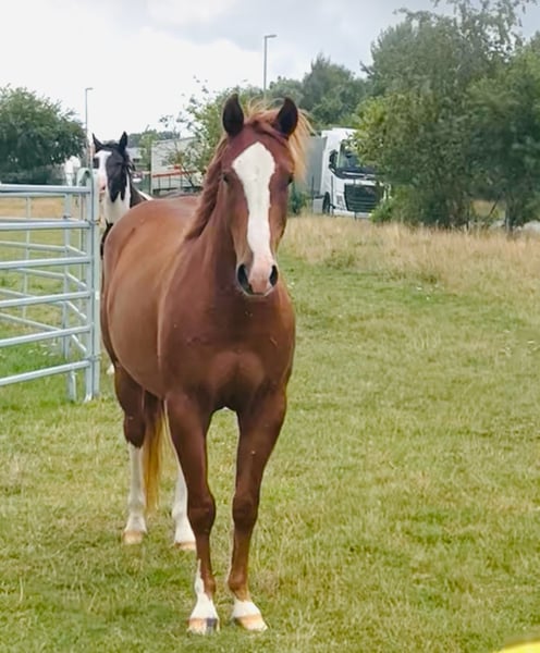 Jonge Quarter-merrie in goede handen te plaatsen. Socke kwam vorig jaar als gezelschapspaard bij ons en liep samen met een Tinkermix op de grote wei. Hij is halster- en longeerbaar, kent de hoefsmid, dierenarts, trailer rijden, poetsen en aan de longeerlijn. Voorwaartse standfouten. Het wordt nu tijd dat hij zijn eigen weg gaat. Hij is wat dominant en zal af en toe vragen of jij nog steeds de baas bent. Vanwege gezondheidsredenen is er nog geen grondwerk met hem gedaan. Geen Quarter-papieren aangevraagd, maar de ouders zijn wel bekend. Het paard heeft alleen een groen paspoort.