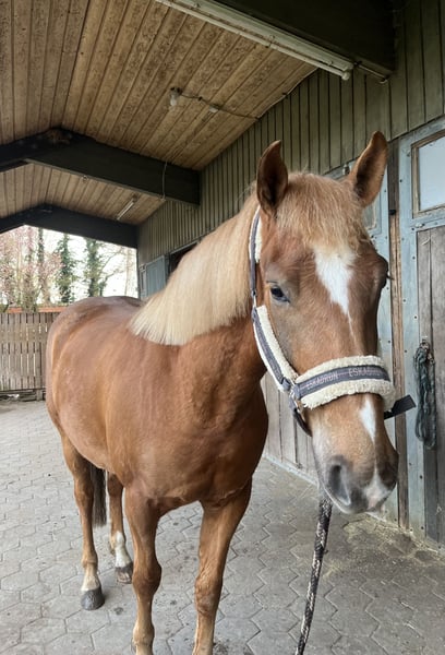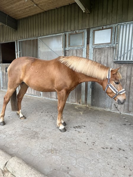 Schweren Herzens verkaufen wir unseren 3 jährigen Quarter Pony/Haflinger Mix Wallach Golden Boy. Er ist seit August 2023 bei uns und durfte behutsam aufwachsen. Er ist altersentsprechend roh, kennt jedoch bereits den täglichen Umgang, ist brav beim Putzen und Führen. Er zeigt sich immer neugierig, lernwillig und sehr menschenbezogen. Er ist gesund, regelmäßig entwurmt und ebenso regelmäßig beim Schmied. Zudem kennt er die Haltung im Offenstall, sowie in der Box. Nur in die besten Hände abzugeben.