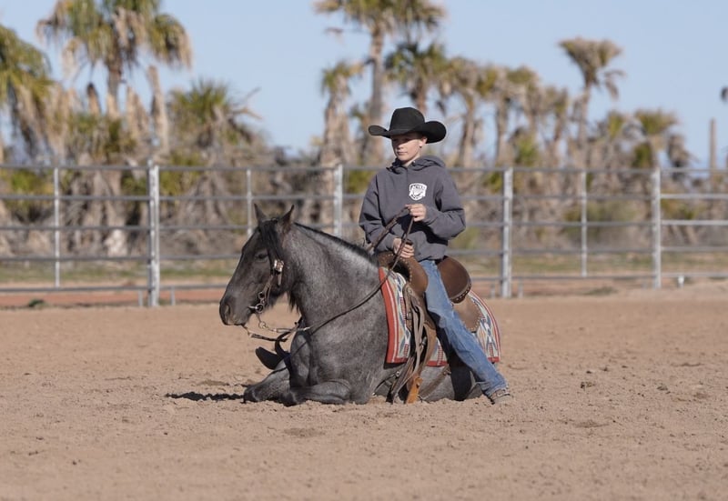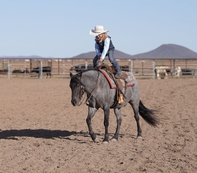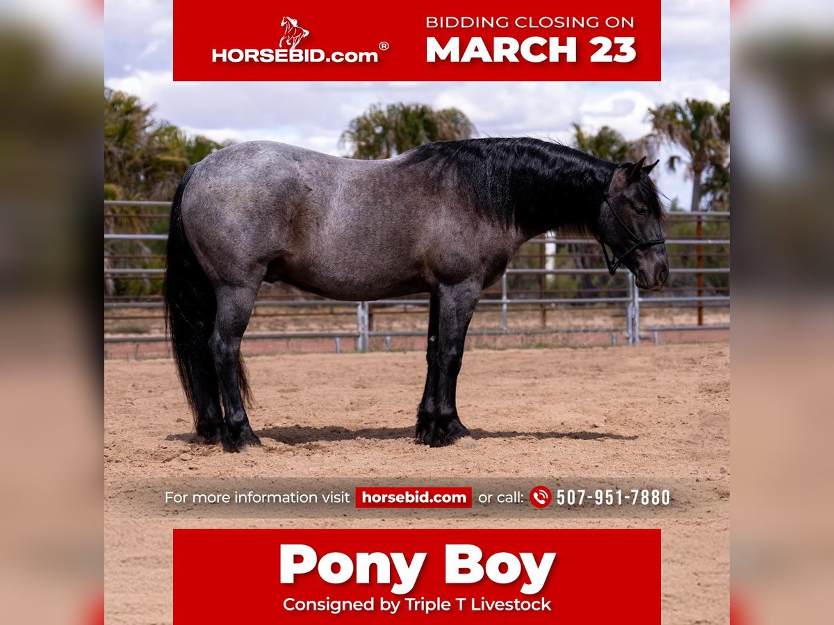 ⚜️𝓽𝓱𝓮 𝐆𝐎𝐋𝐃 𝓢𝓮𝓵𝓮𝓬𝓽⚜️ Happening now thru MONDAY | MARCH 23rd - Available EXCLUSIVELY on HorseBid's website! For more details and to register visit: www.Horsebid.com CONSIGNOR CONTACT: Triple T Livestock 507-951-7880 LOCATION: Aguila, AZ BREED: Quarter Pony REGISTERED: No REGISTERED NAME: Pony Boy COLOR: Blue roan HEIGHT: 13.3 AGE: 4 GENDER: Gelding Pony Boy is as cute as they come! This blue roan quarter pony is absolutely striking with his color, build, and presence. Standing at the perfect Pony size 13.3 hands tall. He’s the kind that turns heads everywhere he goes, with a kind eye, a soft expression, and just enough feather to make him a picture-perfect little gentleman. He’s broke to ride and truly a joy to swing a leg over. Pony Boy lopes soft, collected circles, is light in his face and sides, and moves with balance and grace. He’s a naturally good mover with smooth gaits, a nice stop, and a kind, willing attitude that makes him enjoyable for riders of all ages. This cool little gelding has been desensitized to it all—tarps, balls, dogs, pigs, traffic—you name it. He’s quiet-minded and steady, the same every time you catch him. Pony Boy also knows a few fun tricks, including laying down and curbside mounting, which make him an instant crowd favorite. The kids love using him to bring up the roping steers and gather the longhorns, and he takes it all in stride with his calm, gentle nature. He is even around enough for mom and dad. Out on the trail, he’s confident, sure-footed, and solid in every way. With his color, training, and unbeatable disposition, Pony Boy checks every box—he’s gentle, fun, flashy, and ready to be the whole family’s favorite pony.