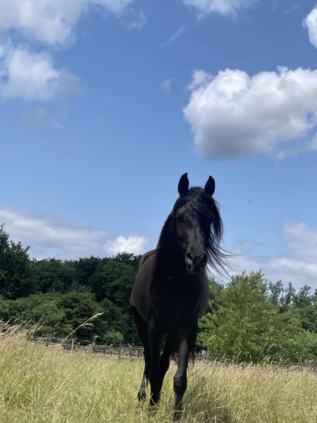 Zum Verkauf steht ein wunderschöner Rappe Quarter Pony Mix Wallach, geboren im Jahr 2022. Er hat ein Stockmaß von 155 cm. Er ist ideal für Personen, welche ein Pferd zum selber ausbilden suchen und nun starten wollen. Er geht ohne Probleme auf den Hänger, Schmied ist auch kein Problem. Angeritten ist er nicht, aber kennt Sattel Gewicht. Er ist ein verspielter und super kuscheliger Kerl. Manchmal etwas ängstlich, aber keiner der durchgeht. Man darf trotzdem nicht vergessen, dass er immernoch ein Jungpferd ist und er gerade erst am Anfang seiner Ausbildung. Aktuell steht er im Offenstall und das sollte auch so bleiben aufgrund seines Temperamentes. Es ist kein Notverkauf und ich würde mir den Platz vorher anschauen. Der Wallach ist gesund und frei von bekannten Krankheiten. Er freut sich auf eine neue Familie, die ihn artgerecht fördert und liebt. Es liegt mir am Herzen, dass er ein gutes Zuhause für immer findet. Bei Interesse oder weiteren Fragen stehe ich gerne zur Verfügung.