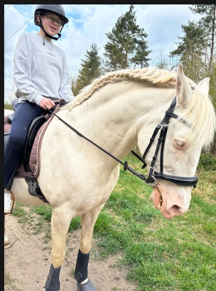 Hallo ich bin Ella 13 Jahre alt und komme aus nrw . Ich bin seit knapp 3 Jahren wieder aktiv im Sattel . Ich selber würde mich auf einem guten E Niveau einschätzten beim springen habe ich eher keine Erfahrungen , bin aber für alles offen ☺️Ich bin sicher in allen GGA Über mich : 13 jahre alt fast 14 1.66 m groß werde um die 1.73 ( große Eltern ) Wiege zurzeit 50 kg Gutem E Niveau Zu dem Pferd Sollte gerne min . 1.50 groß , aufgrund meiner langen Beine Auf dem reinplatzte / Halle so wie im Gelände sicher sein Keine Unarten Gerne kein jungpferd ( meine Mutter ist bis vor 15 Jahren über 10 Jahre lang geritten bis zum guten A bis L Niveau) Das heißt falls das Pferd noch nicht so erfahren sein sollte könnte meine Mutter mich auch unterstützen Wir sind mobil , doch es sollte gerne nichts so weit weg sein ( 46459 ) Weiter Bilder und Videos könnten auf Ansprache zukommen , genauso wie die Telefonnummer auszutauschen Evtl. Ergibt sich ja etwas Vieles Grüße ☺️