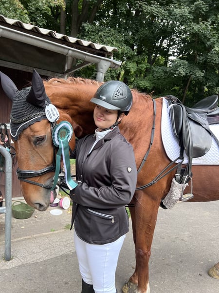 Ich suche eine Reitbeteiligung. Erstmal etwas über mich: Ich bin 19 Jahre alt, 1,63 m groß und wohne in Köln-Weiden (50858). Es wäre toll, wenn das Pferd in meiner Nähe stehen würde. Ich habe einen Führerschein und ein Auto und bin dadurch mobil. Ich reite seit 11 Jahren Dressur und seit 3 Jahren Springen, wobei mir das Springen mehr Spaß macht. Im Springen reite ich auf A-Niveau, in der Dressur auf E/A-Niveau. Das Pferd, das ich suche, darf auch etwas anspruchsvoller sein. Ich bin kein Anfänger mehr, auch wenn ich „nur“ auf E/A-Niveau reite. Ich reite seit der 1. Klasse, bin routiniert und habe meist keine Angst. Ich reite sehr gerne aus und habe darin Erfahrung. Außerdem mache ich gerne Bodenarbeit und Freizeitaktivitäten. Ich helfe selbstverständlich auch im Stall, wenn Unterstützung benötigt wird. Sollte das Pferd verletzt sein, kümmere ich mich zuverlässig darum und gebe sofort Bescheid, wenn mir etwas auffällt. Das Wohl des Pferdes steht für mich an erster Stelle. Ich würde gerne 1–2 Mal pro Woche kommen. Grundsätzlich bin ich flexibel, da ich jedoch derzeit ein Praktikum mache, habe ich nicht an jedem Tag Zeit. Termine lassen sich aber gut nach Absprache planen. Für das passende Pferd bin ich bereit, eine Kostenbeteiligung zu übernehmen. Diese wird von meinen Eltern getragen, sie sind damit einverstanden. Ich freue mich auf Nachrichten und hoffe, jemanden zu finden 😊 Herzliche Grüße Romy