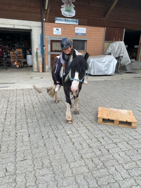 Hey! Ich bin Liya, 14 Jahre alt und bin auf der Suche nach einer Reitbeteiligung oder einem Pflegepferd. Ich bin zuverlässig, flexibel und immer offen für alles. Ausserdem lerne ich gerne neues dazu um meine Erfahrungen weiterzuentwickeln🥰 Ich möchte ausserhalb der Reitschule mehr Zeit mit Pferden/Ponys verbringen. Mit ihnen zu lernen und Spass zu habe, ob im Sattel oder am Boden bereitet mir sehr viel Freude, ich kann auch ab und zu mal im Stall helfen, falls nötig. Früher als ich noch Western geritten bin haben wir sehr viel bodearbeit gemacht und Tricks mit den Ponys. Ich liebe es Spazieren zu gehen und gehe manchmal auch joggen, da wäre es natürlich grossartig könnte ich ein Pferd/Pony dabei mitnehmen. Ich beherrsche alle Gangarten sicher und liebe es zu springen. Mein bisher höchstes Hindernis war 90 cm, die ich aber erst ein paar Mal gesprungen bin. Es wäre richtig toll, wenn ich im Springen noch mehr Erfahrung sammeln könnte (muss aber auch nicht unbedingt sein;)) Im Gelände war ich auch schon, ob alleine oder mit einer Gruppe für mich spielt es keine Rolle. Der Preis soll einfach bitte nicht zu übertrieben sein:) Wünsche euch noch eine wunderschönen Tag💫