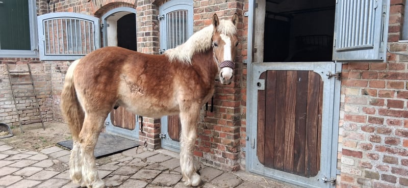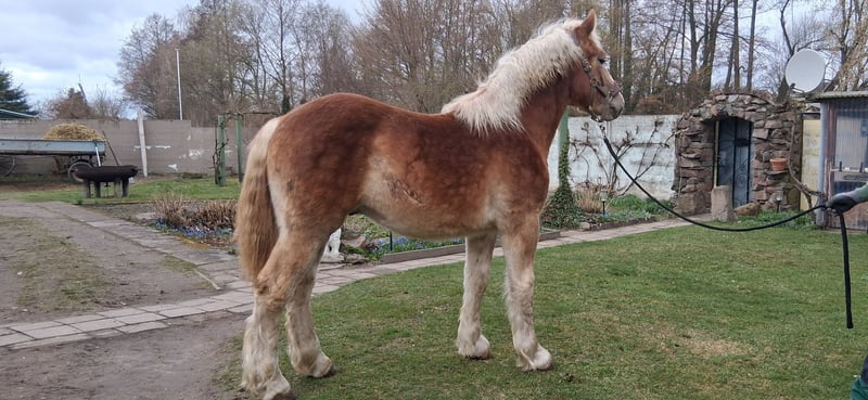 Zum Verkauf steht unser typvolles rh.dt. Kaltblut-Hengstfohlen in der Farbe Fuchs mit hellem Behang und einer sehr schönen Doppelmähne. Ural überzeugt durch seine guten Grundgangarten, einem korrektem Fundament sowie durch seine aufgeschlossene, dem Menschen zugewandte Art. Vater ist der Landbeschäler des Landgestütes Moritzburg, Urmel, Bundesreservesieger 2017. Ural kennt selbstverständlich das Fohlen-ABC, ist halfterführig, wird regelmäßig dem Hufschmied vorgestellt, geht brav auf den Pferdeanhänger, ist mehrfach entwurmt und geimpft. PSSM-Status: n/n (über die Eltern)