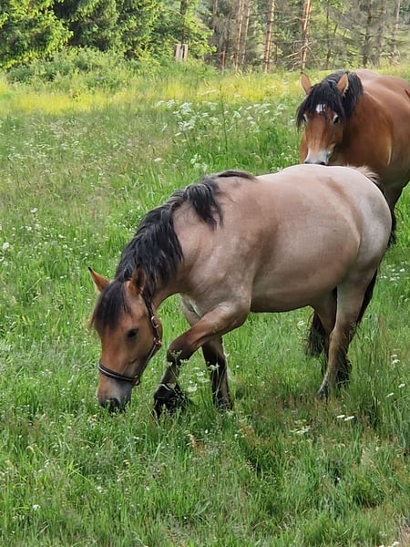 Absolut liebenswert , angeritten ,über den Sommer nochmal auf Koppel gestellt . Sie ist nicht die Größte ,Ihre Mutter ist bei uns und hat 162 cm . Uschi ist für jeden Spaß zu haben , ist angeritten ,kennt Schritt trab und Galopp unter dem Reiter , dabei immer brav und gut zu händeln . Sie geht alleine von der Herde weg ,absolut menschenbezogen ....