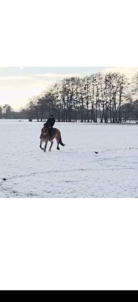 Aus familiären, belastenden Gründen muss ich mich schweren Herzens von meinem sportlichen Kaltblut trennen. -wallach -6 Jahre alt -1.68 groß -sportlich -kuschelbär Artos musste leider schon den ein oder anderen Umzug/Besitzwechsel mitmachen und ist bei mir selbst erst 3 Monate Zuhause (weshalb ich ihn wieder abgebe, können wir gern privat besprechen). Er ist eine wirklich reine Seele und macht unglaublich viel Freude. Er hat Spaß an der Arbeit und ist immer stets motiviert. Er wird Dressurmäßig gearbeitet, im springen nicht weiter gefördert, er zieht gut an, ist jedoch wohl kein Springpferd *lach*. Ein kleines Kreuz oder einen kleinen Steil, haben wir aber schon gemeistert. Im Gelände benötigt er einen erfahrenen und ihm Sicherheit vermittelnden Reiter, weil er manchmal ein kleiner Schisser ist. Er macht das jedoch mit 2. Pferd sehr souverän und wird auch nicht blöd dabei. Das ist eine Sache des Trainings und der Gewohnheit. Macht aber keinen Unsinn und wird auch nicht Kopflos. Er bereitet mir sehr viel Freude und ich hänge wirklich mit viel Herz an ihm. Er lernt schnell und ist vom reiterlichen Gefühl her auch nicht sehr massiv. Gern berichte ich persönlich noch einmal mehr von ihm oder schicke Videos oder Fotos rüber. Zubehör könnte er gegen Aufpreis mit bekommen. Er hat einen WOW Sattel. Er kennt und sollte bestenfalls in Offenstallhaltung und viel Bewegung und Spielkumpels zur Verfügung haben. Er ist nicht extrem ranghoch, aber definitiv auch nicht rangniedrig.