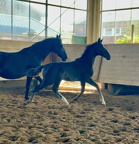 Very active colt for sale by Fiji. Fiji has produced top foals in a row this year and last year. A full brother from last year is staying in stallion breeding. Sale only because the current stock is too large. All siblings are highly respectable under saddle and of really good quality. The mare and foal are in professional breeding and are always well-fed and cared for. If you're interested, just get in touch - I can gladly share more about the mother and the siblings :) Half-sister and offspring are also on site.
