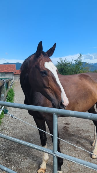 Description: I am offering my top-fit mare, "Poly's Miss Blue," for sale. She underwent a comprehensive health check (AKU) in October 2021. Poly is an energetic, sporty mare who has successfully competed and placed up to class L in show jumping in the past. Current Status: She has not been worked in show jumping over the past four years but remains in excellent physical condition and is still eager to move and jump. She has not forgotten her skills or her technique, and with appropriate training, she can certainly regain her former performance level or provide a dedicated rider with great pleasure as a high-quality leisure horse. Trail & Temperament: Poly is a loyal companion for her person. She is confident in the terrain but requires a firm, trusting handler. She needs someone she can trust 100%, and once that bond is established, she is a lifelong partner who sticks with you through thick and thin. Details: Sport: Successful in show jumping class L (currently on a break). Type: Sporty, energetic, willing to work, focused, always eager to please, and giving her best. Health: In top condition, no known issues. Special traits: Seeks a close bond with a consistent handler. Summary: Poly is not a horse for quick tournament success overnight but a true gem for someone willing to retrain her or looking for a sporty partner for daily work and trail riding.