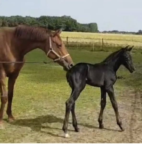 Elegant Rhineland mare for sale – ideal for dressage! The mare is four years old, backed, and has competed up to easy A dressage. She later went into breeding and has produced many beautiful foals with excellent temperaments. Silver premium awarded. She has successful full and half-siblings placed up to S* , **, and *** level in dressage. She has very good basic gaits and is still unexhausted. She is very gentle and easy to handle. For serious inquiries, we are happy to send a video. Please feel free to contact us with any further questions.