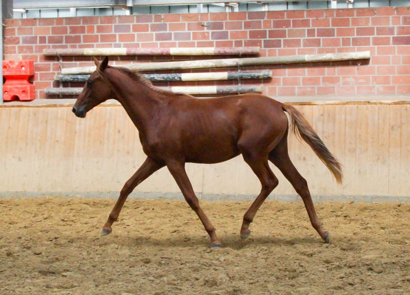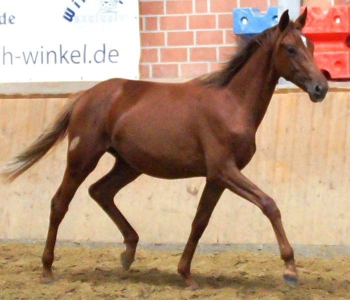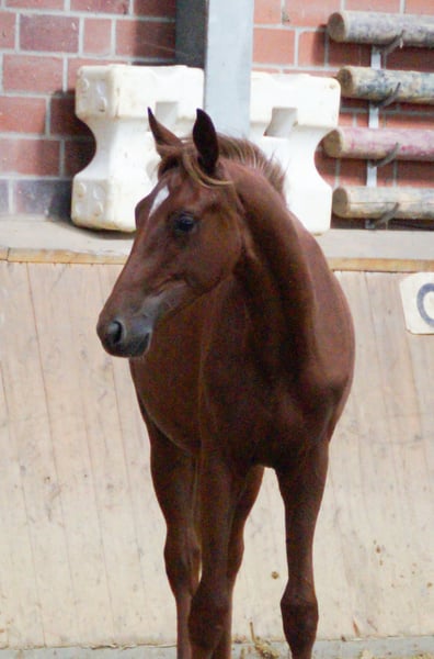 Sexe : Jument Race : Cheval de selle rhénan Origine : Quantensprung x Quaside MD de DSP Quasi Gold MD Âge : née le 01.04.2024 Jument avec une excellente lignée en dressage Elle possède 3 bonnes allures Elle connaît l'ABC des poulains et est sociable avec les humains Elle se laisse mener et se met facilement le licol au pré. Pour plus d'informations, contactez le numéro 0176 62495567.