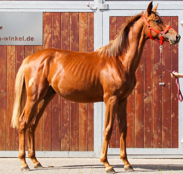 Gender: Mare Breed: Rhineland Riding Horse Pedigree: Quantensprung x Quaside MD by DSP Quasi Gold MD Age: Born 01.04.2024 Mare with an excellent dressage pedigree She is equipped with 3 good basic gaits Knows the foal ABC and is people-oriented She can be led and is easy to halter in the pasture. For more information, call 0176 62495567