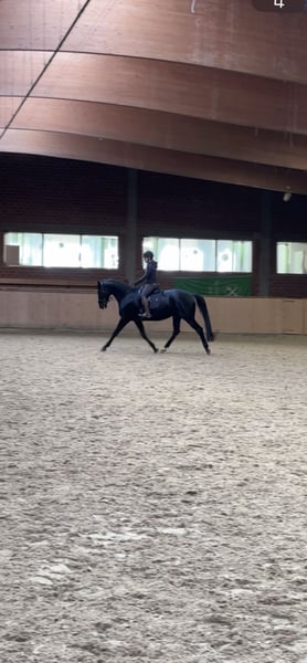 Te koop staat mijn prachtige zwartzwarte merrie Feengold, een dochter van For Gold x Giacomo van Grannus. Na zorgvuldige overweging heb ik besloten om mijn merrie Feengold in goede, stimulerende handen te geven, ondanks dat het me zwaar valt. Feengold heeft een stokmaat van 1,65 m en is geboren in 2018. Ze is ongeveer een jaar geleden aangezet en is daardoor nog onervaren, wat haar de tijd geeft om rustig door te groeien. Ze is basis opgeleid en bevindt zich in een harmonieuze, voortdurende ontwikkeling. Ze toont zich altijd gemotiveerd, alert en leergierig. Door haar afstamming is ze ook interessant voor de fokkerij. De focus van haar tot nu toe gevolgde opleiding ligt in de dressuur, waarin ze momenteel veilig op L-niveau presteert. Met de eerste L-rijlessen, vooral de buitenwaartse galop, is al begonnen in de training. Ook in springen toont Feengold veel talent, is overzichtelijk en makkelijk te hanteren. Ze gaat eerlijk naar het sprong, wil betrouwbaar over de hindernis en brengt duidelijk plezier in het werk. Ze blijft nooit staan en wil alles goed doen. Hierdoor is ze veelzijdig inzetbaar en ook geschikt voor andere taken, bijvoorbeeld in de veelzijdigheidssport. Ik wens voor Fee een ruiter met een stevige basis, die haar duidelijke hulp biedt en haar verder kan stimuleren. Ze is zeker geschikt voor ambitieuze jonge ruiters, mits er goede begeleiding is van een trainer of ervaren ouders. Feengold is altijd zorgvuldig verzorgd: haar tanden zijn voor het laatst in april van dit jaar gecontroleerd, regelmatige fysio- en osteobehandelingen zijn uitgevoerd. Begin december is er een uitgebreid bloedonderzoek gedaan, dat zonder afwijkingen was en bij interesse uiteraard ingezien kan worden. Ze is hoefbevrij en heeft tot nu toe geen hoefijzers nodig gehad vanwege haar goede hoeven. Passend tuig kan op verzoek worden mee overgenomen; de zadel is pas in mei opnieuw passend gemaakt. Bij verdere vragen sta ik u graag te woord. Alleen bij serieuze interesse graag contact opnemen.