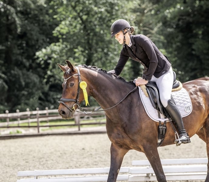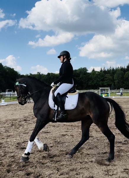 This 9-year-old mare immediately captivates with her charming personality and elegant presence. She is a true “lady’s and women's horse” – straightforward, reliable, and sportily ambitious. Her height is 16.1 hh. Having already achieved multiple wins in small tour dressage competitions, placed in L-level classes, and with M-L level movements in training, she proves to be a talented partner for ambitious riders. With her three excellent basic gaits and her uncomplicated nature at competitions, she is ready to be ridden immediately. In the terrain, the mare also shows herself to be well-behaved and easy-going, making her a pleasure both in the arena and outdoors. This wonderful mare is being offered for sale with a heavy heart – we wish her a loving, nurturing home where she can continue to shine. If you are looking for a talented and reliable partner for dressage, this Rhineland mare is exactly the right choice for you! She is regularly vaccinated and dewormed, and her teeth have been maintained regularly. For further information or to arrange a viewing, please contact me. We look forward to hearing from you!