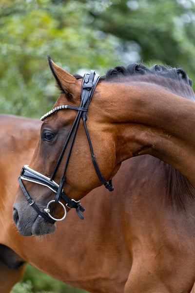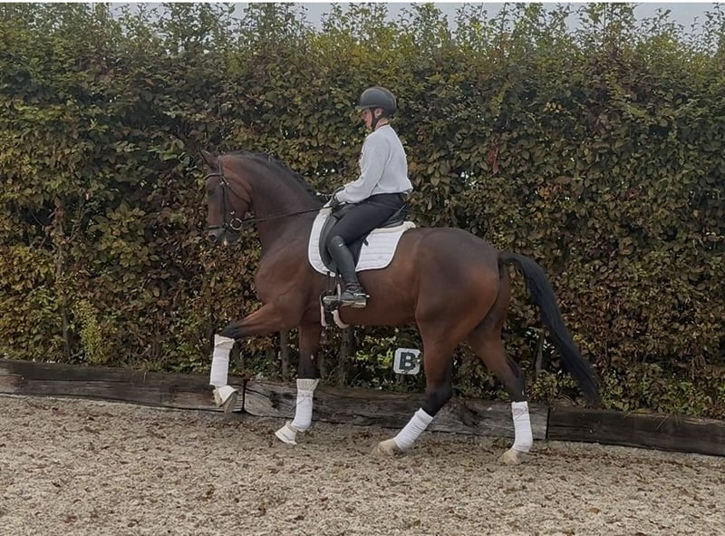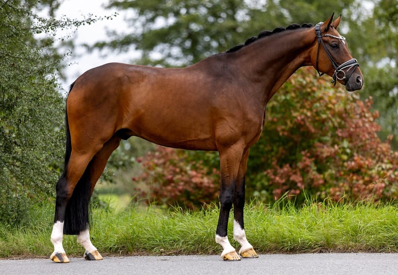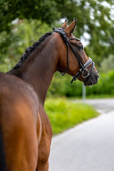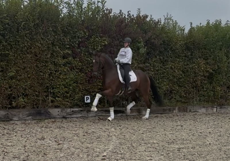 This expressive, elegant gelding impresses not only with his three outstanding basic gaits but also with his rideability and excellent character. He is reliable and uncomplicated – both in daily handling and under saddle. With his lightness to the aids and steady contact, he is easy to ride through the neck and always provides a pleasant riding experience. He is also perfectly suitable for less experienced riders. Training level: He masters all movements of M level with confidence. Currently, he is working on the exercises of S level, such as series changes and canter pirouettes. He can be ridden equally well on snaffle and double bridle. This gelding is ideal for ambitious riders with competition perspective as well as for amateurs looking for an uncomplicated, honest dressage partner to enjoy every day. He also presents himself as an excellent prospect for Children, Juniors, and Young Riders – a promising horse for the future that will surely bring home many ribbons. A versatile dream horse that leaves nothing to be desired. The horse has a current, very good vet check (X-rays available). Riding videos can be provided upon request – preferably via WhatsApp.