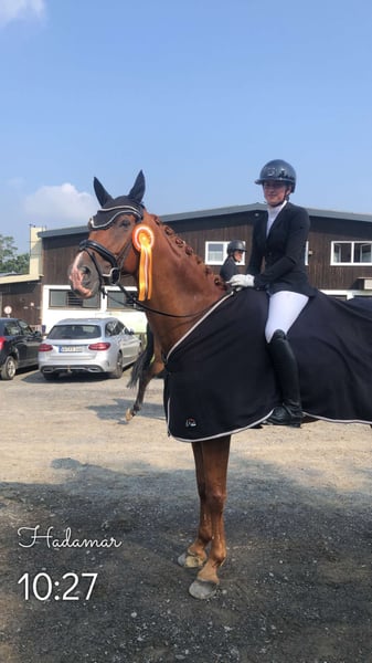 Aufgrund von Zeitmangel steht ein bildschöner Rheinländer Wallach, geboren im Jahr 2011, zum Verkauf. Er hat ein Stockmaß von 172cm und zieht mit seinem Ausdruck und seiner auffällig bunten Blesse alle Blicke auf sich. Quentin ist ein sehr sympathischer und aufgeweckter Wallach, der angenehm feinfühlig und lektionssicher ist. Er ist bis zur Klasse S** ausgebildet, Pi und Pa sind im Training ebenfalls abrufbar. In den letzten 2 Jahren kann er Platzierungen von Klasse A* bis S** unter Amateuren und absoluten Dressurneulingen vorweisen. Sein Trab und Galopp sind weitaus überdurchschnittlich. Er lässt sich problemlos von kleinen Kindern reiten und meistert auch mit ängstlichen Reitern kleine Sprünge oder Geländeritte. Trotzdem sollte er zusätzlich einen erfahrenen Begleiter an seiner Seite haben, der ihm in verschiedenen Situationen genügend Ruhe vermitteln kann, da er hin und wieder etwas schreckhaft sein kann (kein Bocken oder ähnliches! Nur erschrecken!)Ich könnte ihn mir gut als Lehrmeister im Bereich A bis M vorstellen, oder aber auch als Partner um entspannte Geländeritte und gute, hohe Dressurarbeit zuhause zu leisten. Quentin ist in jeder Situation gut händelbar. Aktuell steht er Tagsüber in einer gemischten Herde auf der Wiese, braucht aber auch die Zeit alleine nachts in seiner Box. Er ist regelmäßig geimpft und entwurmt. Aktuelle Röntgenbilder liegen vor. Aufgrund eines Befundes ist er deutlich unter Wert zu verkaufen. Bisher hat ihn dieser aber nie eingeschränkt, er steht ganz normal im Training. Auch hier gilt Platz vor Preis! Ich wünsche mir einen "für immer Platz" für ihn. Bei Interesse oder für weitere Informationen können Sie sich gerne unter 01782397644 melden!