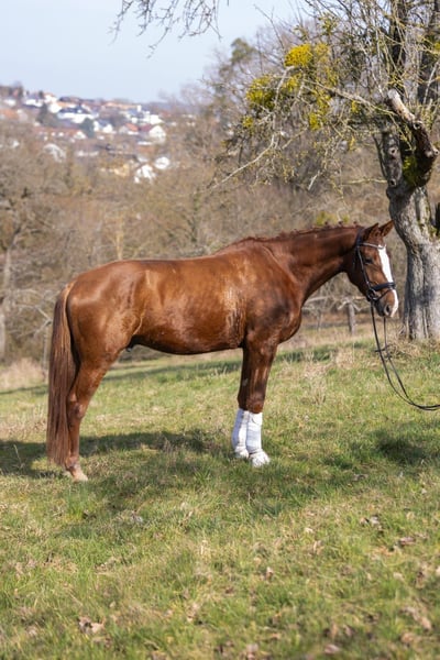 Sithari is a tall, striking chestnut gelding by Selectric x Longton, approximately 1.80 m. Directly from the breeder, he boasts a balanced temperament and a calm demeanor. He is easy to ride in terms of contact and aids, and is neither spooky nor hesitant. He is suitable for riders who wish to further develop a young horse or for ambitious beginners with support. Sithari aims to please his handler, always honest and reliable, and is very people-oriented. Having been in training for only three months, he already provides a secure feeling in the saddle. Sithari is an honest, down-to-earth gelding who will bring his new owner a lot of joy.