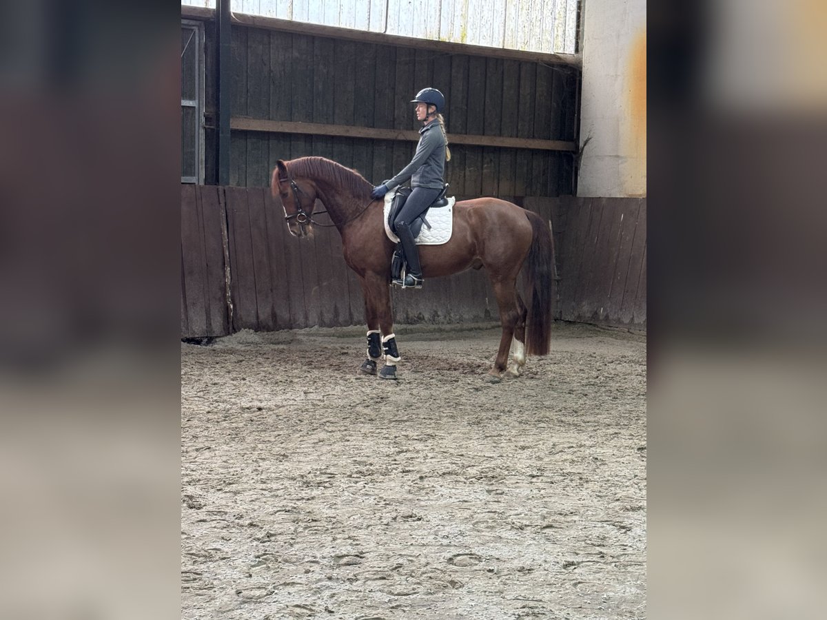 My little Fred is looking for a new home. I bred him myself from a Carry Gold mare. His sire is Feinrich. He is a very handsome chestnut gelding, now six years old, and already confidently jumping flying changes. He learns very quickly and always strives to do everything right. He has an excellent work ethic and a very charming personality. He is very people-oriented and loves attention. Apart from dressage work, he is also familiar with double longeing, and we have taken him out to jump free several times. He shows great talent in this area. Since he carries jumping bloodlines on his dam’s side, I believe he could also be successful in show jumping. He is regularly dewormed and vaccinated, and is farrier- and loading-friendly. He grew up in a herd and is accustomed to box stalls as well as daily turnout on paddock or pasture. Videos can be sent upon request via WhatsApp.