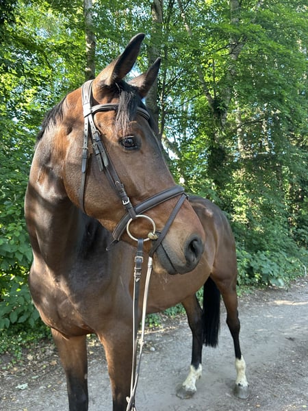 Zum Verkauf steht ein großrahmiger Wallach von Million Dollar, der seiner Abstammung entsprechend mit sehr guter, raumgreifender Galoppade und guter Manier am Sprung ausgestattet ist. Er hat einen tollen Charakter, ist absolut ehrlich und sowohl unter dem Sattel als auch im Umgang artig und unkompliziert. Er wurde 5 jährig angeritten, ist wegen Zeitmangel allerdings noch nicht weit ausgebildet. Mit entsprechender Ausbildung entwickelt er sich sicherlich zu einem vielversprechenden Springpferd oder Freizeitpartner. Aufgrund seines aktuellen Ausbildungsstandes ist er jedoch noch nicht für Anfänger geeignet. Aktuelle Röntgenbilder können angefertigt werden. Um Reittourismus zu vermeiden, berechnen wir für das Probereiten 30 €, die beim Kauf verrechnet werden.