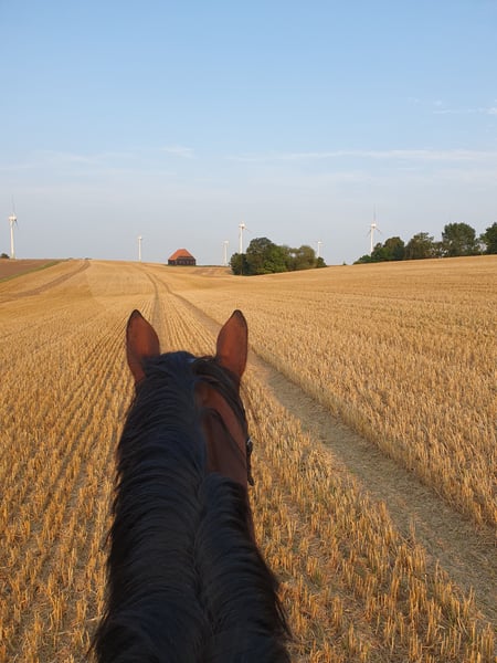 Emil, ein 7 jähriger Wallach von Elastic De Luxe RG & Casablanca, sucht auf diesem Wege aus persönlichen Gründen seinen neuen Herzensmenschen ❤️ Er ist freizeitmäßig geritten, hat eine solide Grundausbildung, geht ins Gelände, lässt sich verladen, Kinder können ihn unter Aufsicht putzen, er ist brav im Umgang und beim Schmied, ist dressurmäßig geritten, macht kleine Sprünge unter dem Reiter. Er könnte auch mit Dreieckszügeln geritten werden, die kennt er. Robustes und korrektes Fundament. 2021: großer TÜV mit 9 Röntgenbildern, ohne Befund, Bilder liegen vor Geimpft, entwurmt, regelmäßig Osteotherapie & Bodyforming Ich wünsche mir, dass er in seinem neuen Zuhause viel Auslauf hat, gern in Richtung Offenstall mit viel Bewegung. Emil ist ein Pferd, das Beschäftigung liebt. Er ist ein absolutes Herzenspferd, deshalb suche ich nach einem Herzensmenschen, bei dem ich Emil in den besten Händen wissen kann ❤️ Bitte melden :)