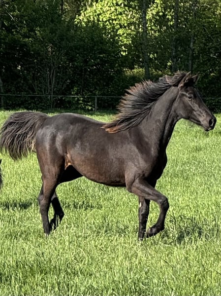 We hereby offer our lovely and beautiful yearling Vica DD. Vica is a daughter of our RMH mare Midsummer Night Lady and the stallion EFM Rockin Rocket. She has the beautiful color Smokey Black and has a very sweet and easygoing character, and she is also well-behaved with the farrier. If you are interested and can provide her with a nice home, please get in touch.