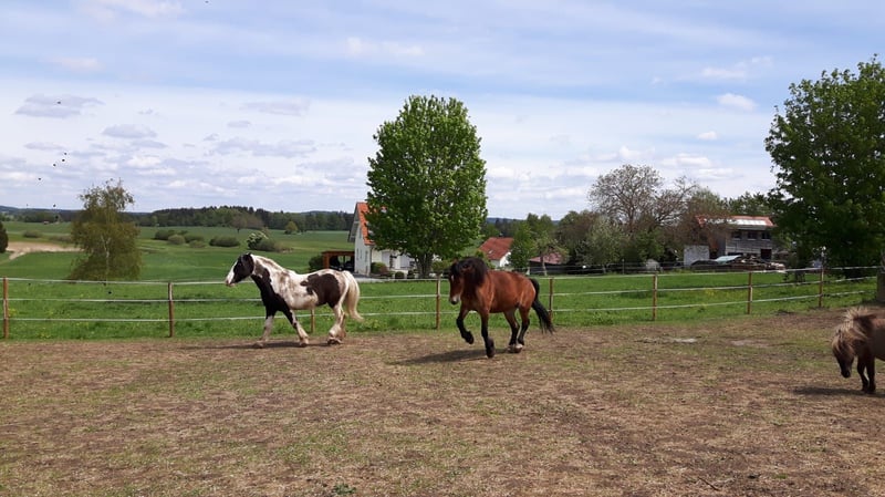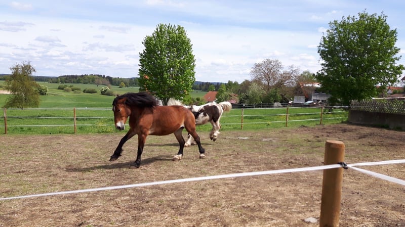 Wir verkaufen unsere zwei Freizeitpferde. Abgabe nur beide zusammen, Preis pro Pferd mit Zubehör (passende Freeform Sättel, Zaumzeuge, Reitpads, Decken und vieles mehr) Wir hatten die beiden Pferde 9 Jahre lang. Sie waren gesund und immer barhuf. Sie stehen bei uns immer schon im Offenstall 24 Stunden Heu und Koppeln. Unsere Jugendliche Kinder haben auf Ihnen reiten gelernt und wir waren immer zu Zweit im Gelände unterwegs mit Ihnen. Beide sind früher Kutsche gefahren daher auch strassentauglich. Momentan stehen Sie seit 1-2 Jahren nur noch bei uns am Hof, da die Kinder zum studieren ausgezogen sind und das reiten aufgegeben haben. Daher müssten die Pferde wieder üben, um das abzurufen was sie alles konnten. Sie sind sehr bezogen auf den Menschen und kennen Hunde, Hühner, Ponys, Esel das war nie ein Problem auch die Enkelkinder sind schon drauf gewesen. Sie beißen nicht und schlagen nicht aus. Hufpflege immer alle 8 Wochen und geimpft sind Sie auch. Alter 16 und 17 Jahre Stockmass: 161,163 cm. Videos vom longieren auf Anfrage