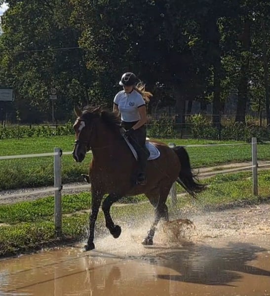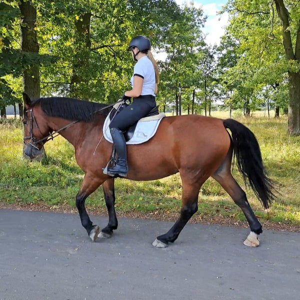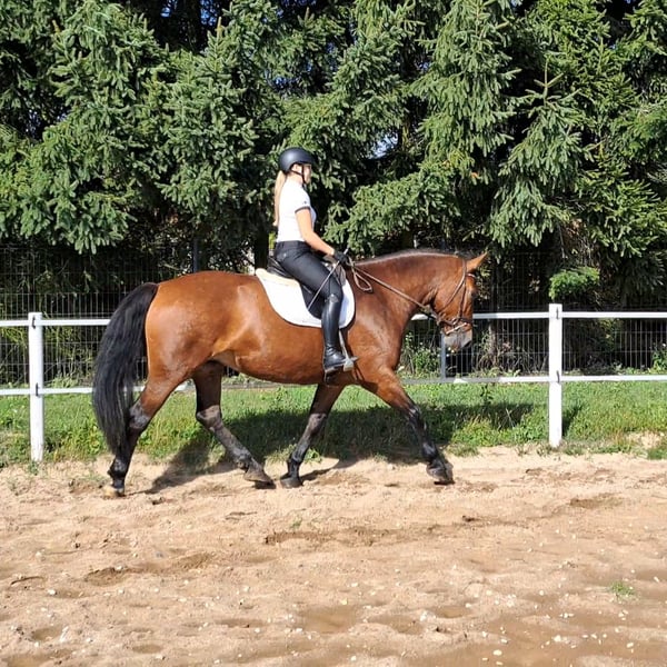 Victoria- Schlesier Stute mit Vollabstammung und Hauptzuchtbuch 7 j.a. 1,68m. Sie ist eine wunderschöne schlesische Stute, geboren im Jahr 2018. Mit ihrem eleganten Brauner-Fell und einem Stockmaß von 168 cm ist sie nicht nur ein Blickfang, sondern auch ein nettes Dressurpferd. Sie is auch Kinder geeignet nd absolut unerschrocken on Gelände. Sie geht auch in der Kutsche. Diese Stute zeichnet sich durch ihre freundliche und aufgeschlossene Art aus. Sie ist gut erzogen, brav im Umgang, kennt Hunde und Katzen. Ihre Bewegungen sind geschmeidig und ausdrucksstark. Tolles Freizeitpferd. Die Stute ist gesund, barhuf und Herdenverträglich. Bei Interesse oder weiteren Fragen stehe ich gerne zur Verfügung. Besichtigungen und Probereiten sind nach Absprache möglich. Standort nähe Görlitz.