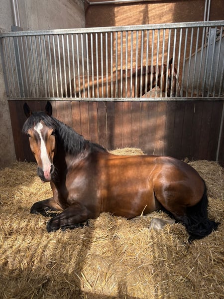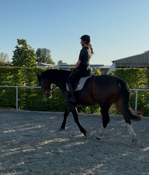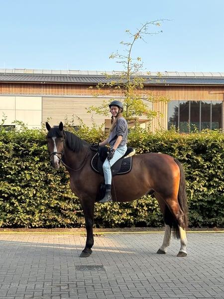 Zum Verkauf steht ein Dunkel Brauner 9-jähriger Wallach Draco der durch seine ansprechende Optik überzeugt. Er wurde überwiegend dressurmäßig gearbeitet und befindet sich auf einem soliden Ausbildungsstand der Klasse A. Zu seinen sichere Lektionen zählen unter anderem Schulterherein, Schenkelweichen, Rückwärtsrichten sowie die Kehrtvolte. Mit weiteren Lektion wie Außengalopp und Traversale wurde begonnen. Teilweise zeigt er sich fein zu reiten und vermittelt dabei ein schönes Reitgefühl. Er hat ein Stockmaß von ca. 170 cm. Er ist problemlos beim Tierarzt sowie beim Hufschmied. Aktuell läuft er barhuf und wurde bereits sowohl alleine als auch in der Gruppe im Gelände geritten. Wir wünschen uns für ihn einen erfahrenen, ruhigen Reiter/ Reiterin mit klarer Linie, der/ die ihn als Pferd schätz und dennoch selbstbewusst und bestimmt mit ihm umgeht. Für Anfänger oder Jugendliche ist er nicht geeignet. Aufgrund seines dominanten Charakters benötigt er eine abwechslungsreiche Arbeit sowie eine ausreichende Auslastung. Vom Boden kann er anspruchsvoll und sehr dominant sein, er wird jedoch nie Kopflos. Aktuell wird er nachts in Boxenhaltung und tagsüber ca. 8.00-15.00 Uhr im Paddock gehalten. Wir können uns allerdings vorstellen das ein Offenstall oder ein Stall mit viel Weidefläche nach einer behutsamen Eingewöhnung geeignet für ihn ist. Ein Weidepartner oder Herdenhaltung würde ihm sicherlich gut tun muss jedoch überlegt und behutsam angegangen werden da er aktuell alleine steht. Ein tierärztlicher Befund liegt vor. Bilder sowie weitere Unterlagen können selbstverständlich eingesehen werden; aktuell scheint ihn dieser in der täglichen Arbeit nicht einzuschränken. Der Hauptgrund des Verkaufs ist auf das fehlende Vertrauen von der Besitzerin an ihn zu rückzuführen welches auch nach intensiven Training nicht Konstanz aufgebaut werden konnte. Auf Wunsch kann er mit einem neuwertigen (ca. 1 Jahr alten), perfekt passenden Ikonik Monoblatt-Dressursattel verkauft werden. Bei ernsthaftem Interesse freuen wir uns über eine Kontaktaufnahme und erzählen gerne mehr.