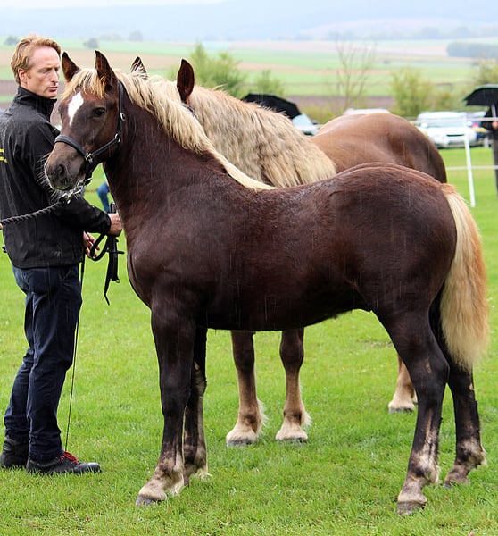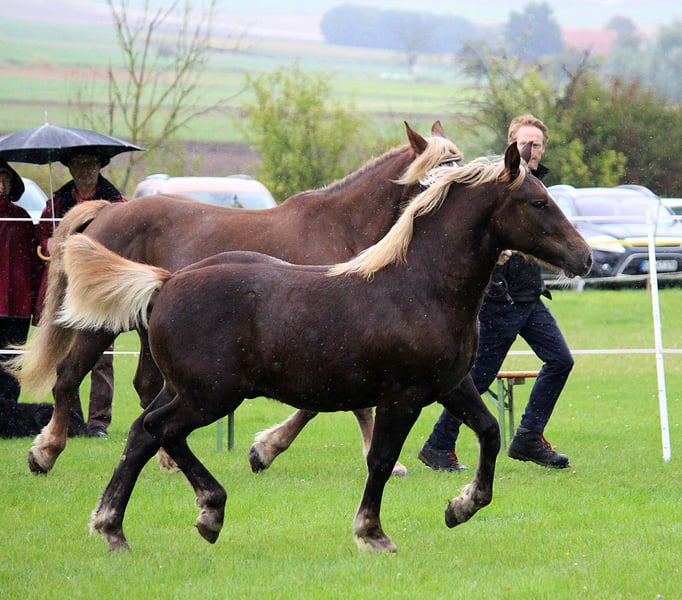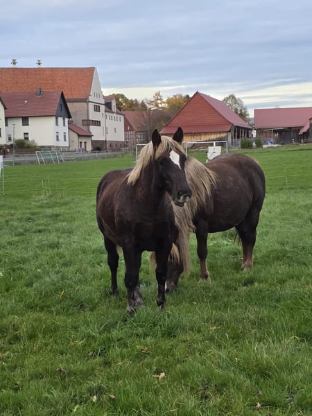 Wir suchen ein neues Zuhause für unser wunderschönes Schwarzwälder Kaltblut Hengstfohlen. Verdinand aus der Edda von Valentino ist im April 2025 bei uns geboren und wächst im Herdenverband auf. Er kennt die Weidehaltung und die Gruppenbox. Er ist neugierig und aufgeschlossen, wodurch auch das erste mal Anhänger fahren keine Probleme verursachte. Er kennt große landwirtschaftliche Maschinen und das Fohlen ABC. Bei der Fohlenschau wurde er mit 34 Punkten als Goldfohlen bewertet. Er ist mittlerweile von seiner Mutter abgesetzt und lebt mit Wallachen, einem 2 jährigen Hengst und einem gleichaltrigen Jährling in Gruppenhaltung. Es können gerne Termine zur Besichtigung vereinbart werden.