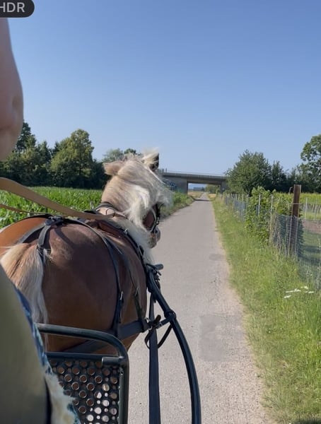 Talented Black Forest Chestnut Gelding, born in 2019, standing at 15.7 hh. This handsome chestnut impresses with his friendly nature and promising potential in dressage as well as driving. He is well-ridden and has been harnessed and driven since 2025. Attentive, always friendly, and very people-oriented. Thanks to his solid basic training, he is suitable for ambitious riders or drivers as well as for higher-level leisure riding. A reliable partner who captivates with his charming appearance and pleasant character. Seeking experienced, horse-loving individuals—no beginners or children, no dealers—only to be entrusted to the best hands. If interested, I look forward to hearing from you. Phone: 01757372045 Dressage saddle and carriage can be purchased together, as I am giving up equestrian sports entirely.