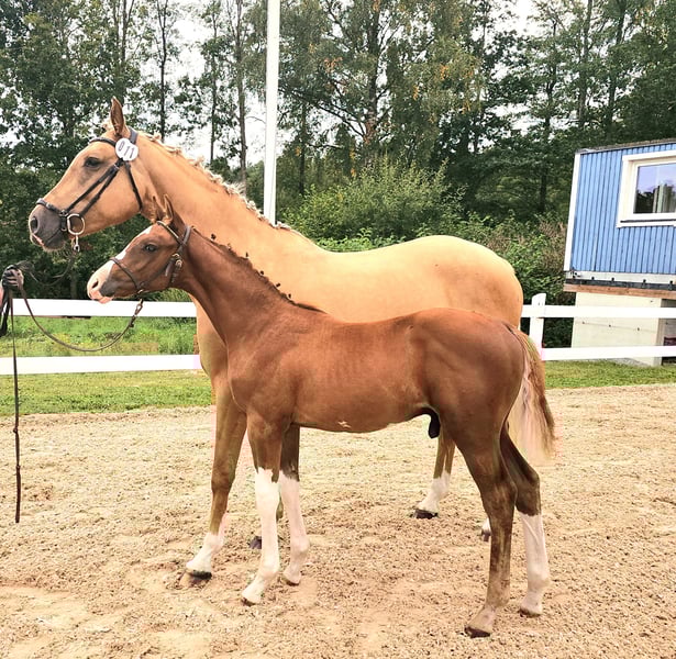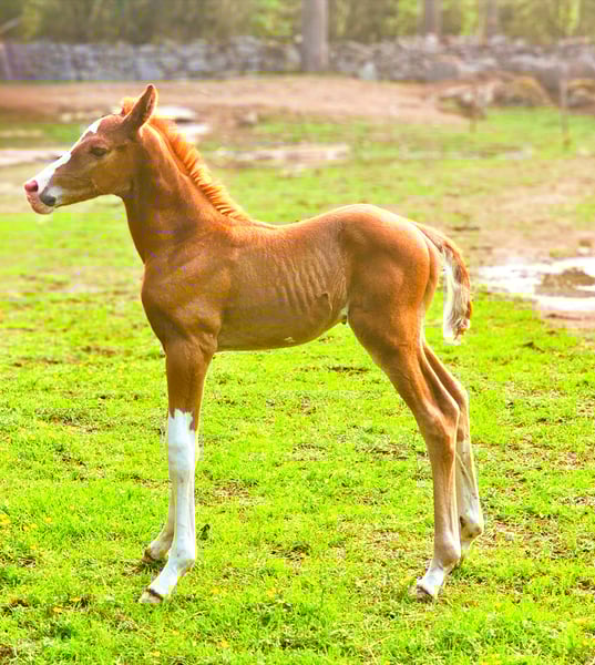 Elegant Swedish Warmblood Stallion for Sale Discover the perfect addition to your equestrian team with this stunning Swedish Warmblood stallion. Born in 2025, this chestnut beauty stands at 168 cm, combining height with grace and athleticism. His impressive jumping ability makes him an ideal partner for competitive show jumping or ambitious training. With a strong, balanced build and a promising pedigree, he exhibits excellent movement, agility, and a willing temperament. Whether you're aiming for the show ring or seeking a reliable partner for training, this young stallion offers great potential and a bright future. Don't miss the opportunity to own a promising Swedish Warmblood with exceptional jumping talent. Contact us today to learn more and arrange a viewing!