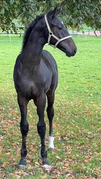 Das Fohlen besitzt viel Eleganz, Ausdruck und überdurchschnittliche Grundgangarten. Er ist doppelveranlagt und springt auf der Weide selbst über Cavalettis ;). Den Umgang mit dem Menschen liebt er sehr, lernt schnell und besitzt einen fantastischen Charakter. Wir haben diese Anpaarung widerholt, da wir begeistert sind von diesem Hengstfohlen. Mutter: Siegerin Stutenleistungsprüfung (von 57 Pferden) Vater: GP Hengst Dressur für Dänemark, unter anderem in Tryon USA, Falsterbo SWE, Aachen GER, Madrid ESP, usw.