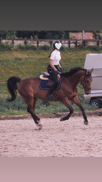 Jeder, der sie kennenlernt, denkt sich als Erstes: „Was für eine Persönlichkeit.“ Mit ihrem hübschen Kopf, ihrem wachen Blick und ihrer positiven Ausstrahlung ist sie einfach eine sehr besondere, liebe Stute. Sie ist bis 1.15 m im Springen ausgebildet und turniererfahren. Dabei zeigt sie sich motiviert, leistungsbereit und zuverlässig. Sie arbeitet gerne mit und ist klar im Kopf. Im Gelände ist sie sicher und sehr brav, auch alleine. Ausritte kann man mit ihr in vollen Zügen geniessen. Sie ist mein absolutes Herzenspferd. Aufgrund meiner Mutterschaft haben sich meine Prioritäten verändert, weshalb ich ihr zeitlich nicht mehr so gerecht werden kann, wie ich es gerne würde und wie sie es verdient. Ich wünsche mir für sie ein liebevolles, langfristiges Zuhause. Platz vor Preis.