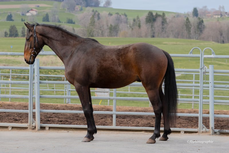 Sie suchen ein Nachwuchspferd mit internationalem Leistungsblut und einem Interieur aus Gold? Sawango (geb. 05.03.2023) Pedigree Sawango ist ein Sohn des Samy du Challois und führt mütterlicherseits das Blut des legendären Quick Star. Diese Kombination verspricht nicht nur die nötige Vorsicht und das Vermögen am Sprung, sondern auch die Intelligenz und Wendigkeit, die moderne Sportpferde auszeichnen. Charakter & Ausbildung Obwohl er noch roh ist, zeigt sich Sawango im täglichen Umgang als absoluter Musterschüler: Klar im Kopf: Er ist sehr aufmerksam und lernt extrem schnell. Kein Angsthase: Er begegnet neuen Situationen mutig und gelassen. Bestens vorbereitet: Er kennt das Putzen, ausgiebige Spaziergänge und läuft bereits souverän als Handpferd mit. Artgerechte Aufzucht Sawango durfte unter optimalen Bedingungen groß werden, was das Fundament für seine spätere Belastbarkeit legt: Sozialkompetenz: Aufgewachsen in einer großen Herde von ca. 20 Pferden (gemischt von jung bis alt). Trittsicherheit: Die Sommer verbrachte er auf den Bergweiden, was seine Balance perfekt geschult hat. Haltung: Im Winter kennt er den Wechsel zwischen täglichem Auslauf und der Box in der Nacht. Eckdaten auf einen Blick: Name: Sawango Abstammung: Samy du Challois x Quick Star Geburtsdatum: 05. März 2023 Status: Wallach, roh Besonderheiten: Sehr menschenbezogen, lernt extrem schnell, unerschrocken. Ein Juwel für Selbstausbilder, die Wert auf eine solide Aufzucht und ein klares Interieur legen. Er ist bereit, mit seinem neuen Besitzer die Welt zu entdecken