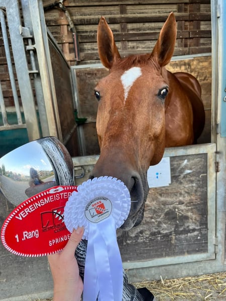 • Springen & Vielseitigkeit • Kinderlieb & brav im Gelände • Turniererfahren, kennt Reitschule • Barhuf • Longier- & Bodenarbeit bekannt