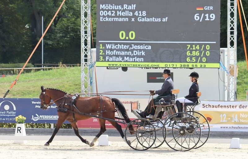 Hella wurde freizeitmäßig geritten und im Fahrsport ein- und zweispännig gefahren. Sie ist im Umgang unkompliziert, du solltest aber schon etwas Erfahrung beim Reiten oder Fahren haben. Sie hatte noch kein Fohlen, war nie krank oder verletzt. Sie hat gute GGA und einen guten Vorwärtsdrang.