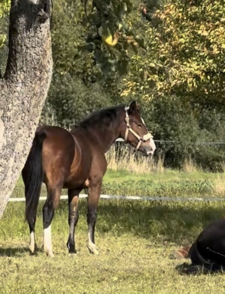 Verkaufe eine wunderschöne Dunkelbraune Warmblut-Stute Zum Verkauf steht eine elegante und robuste Warmblut-Stute, geboren im Jahr 2024. Mit einem Stockmaß von aktuell ca. 150 cm (wird bis ca. 1,65 groß) ist sie perfekt für Freizeitaktivitäten geeignet und überzeugt durch ihr freundliches Wesen und ihre Vielseitigkeit. Diese junge Stute ist ideal für Reiter, die ein zuverlässiges und charmantes Pferd für die Freizeit suchen. Sie ist gesund, gut erzogen und zeigt viel Potenzial für die weitere Ausbildung. Bei Interesse oder für weitere Informationen stehe ich gerne zur Verfügung. Kontaktieren Sie mich, um mehr über dieses tolle Pferd zu erfahren!