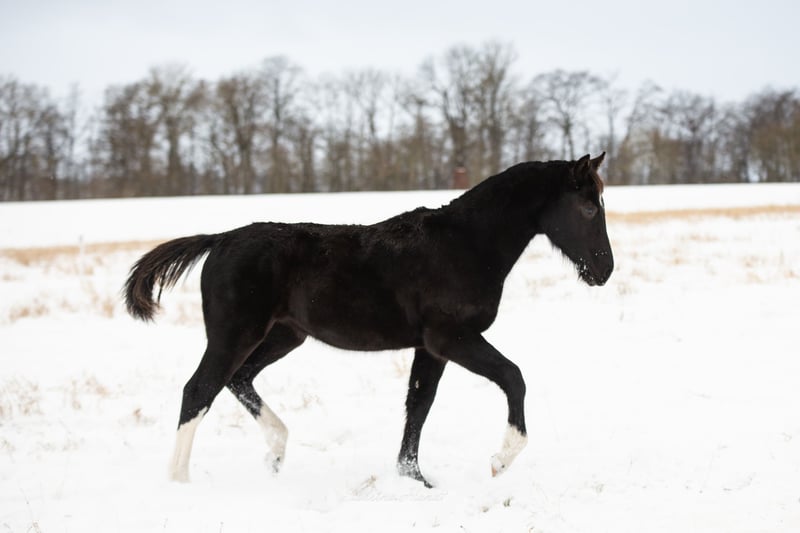 „Glanzstück“ Rapp- Jährlingsstute, Schw. Warmblut, Freizeitpferd
