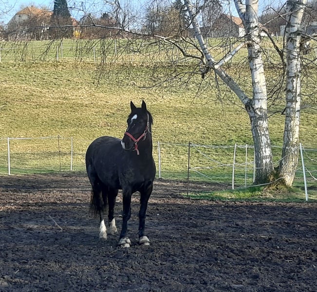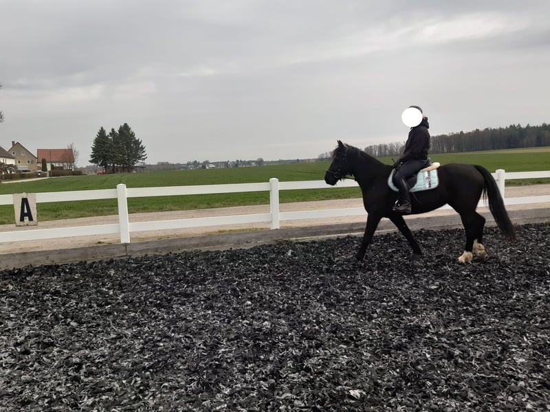 Hübsche Stute (STSW) als Reit- und Freizeitpferd zur weiteren Förderung in gute Hände abzugeben. Reva, von Lombard (Mutter von Emilio - Geronimo), 4 Jahre (geb. 2022), schwarzbraun, aktuell ca. 1,54 und noch in Entwicklung. Sie ist angeritten, lernt schnell, ist fleißig und hat gute Grundgangarten, v. a. Trab. Kein reines Anfängerpferd. Sie ist umgänglich, menschenbezogen, schmiede- und verladefromm, regelmäßig geimpft und entwurmt. Sie wurde auch zweispännig gefahren. Wegen Bestandsveränderung wird sie zur weitern Förderung als Reitpferd abgegeben. Platz vor Preis. Bei ehrlichem Interesse bitte telefonisch melden unter 01520-2995699.